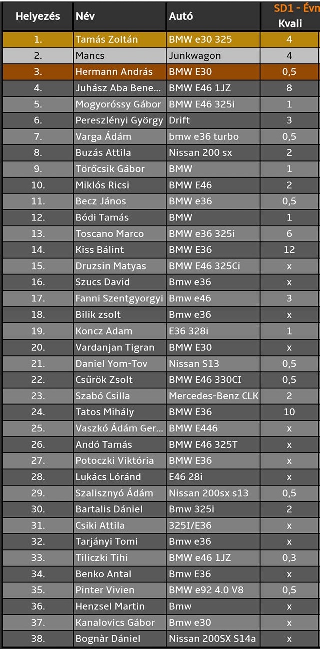 Tököl Drifted bajnokság zárófutam összesített 10. hely