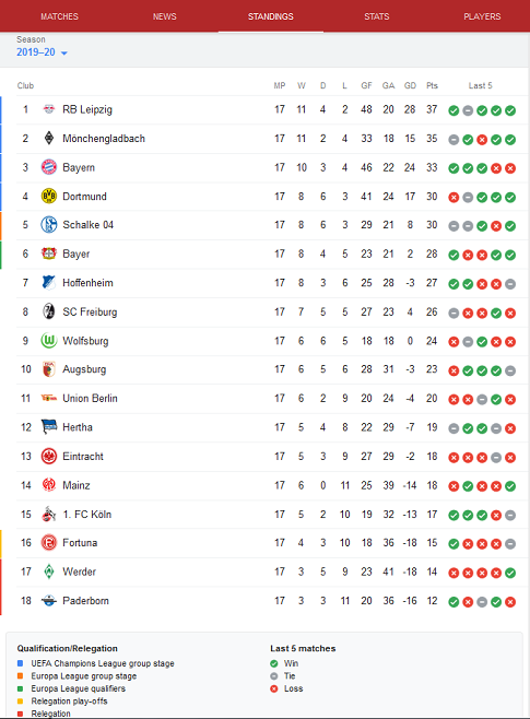 A Bundesliga jelenlegi állása: