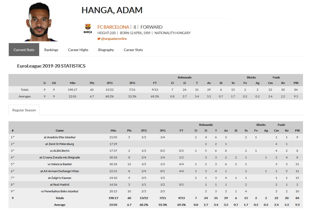 A következő táblázat pedig az Euroliga idei szezonjának 9 mérkőzését összesítve mutatja a magyar válogatott kiválóság statisztikáit: