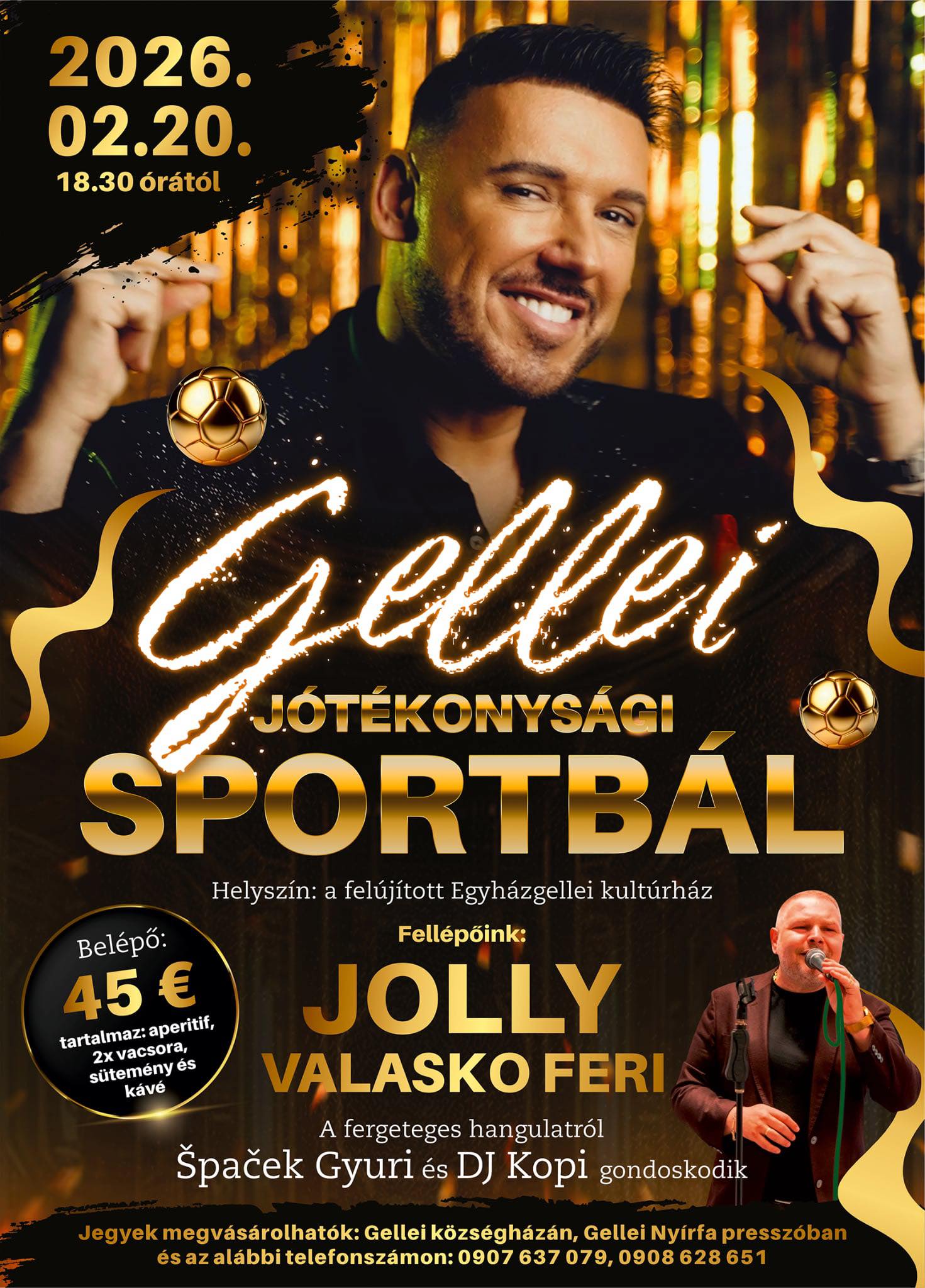 A bál 18:30-kor kezdődik, a belépőjegy ára 45 euró. Jegyek elővételben a községházán, a Nyírfa presszóban, valamint a megadott telefonszámokon foglalhatók. A szervezők szerint az est nemcsak szórakozást, hanem valódi összefogást is jelent a helyi sportélet és a rászorulók javára.
